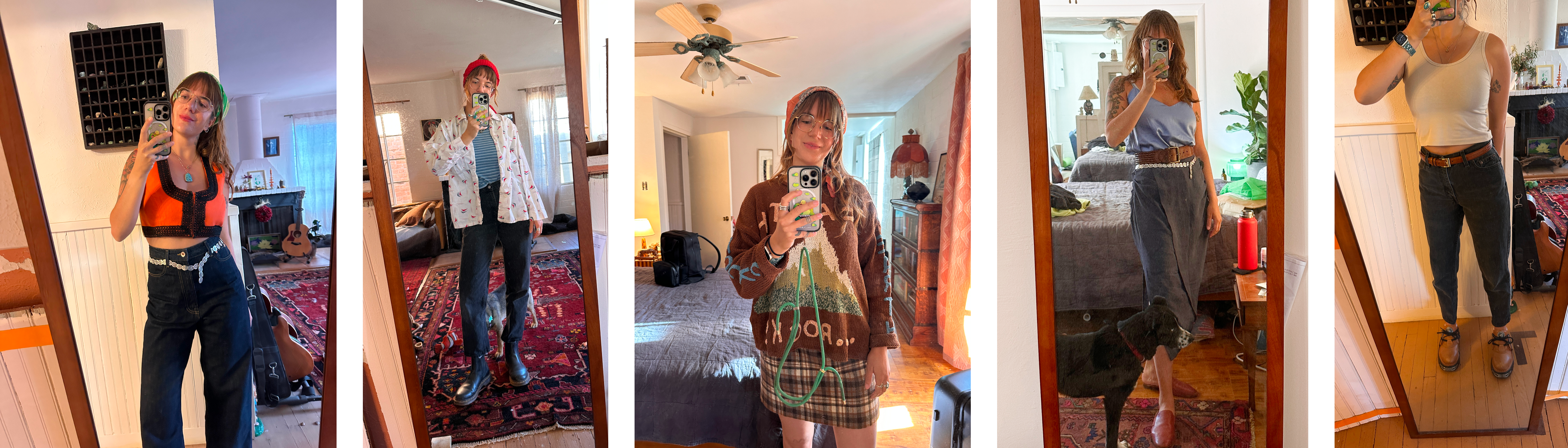 I appreciate 20s Kara style. It’s colorful and somehow cohesive in its un-cohesiveness. I attribute a lot of my style explorations at that age to my friends, who were incredibly playful with their own styles. I’m also thankful for Kime at The End for hiring me to be shop girl for a lil while. I spent all the money I made there on exceptional and interesting vintage. It was a wonderful time of self-discovery.